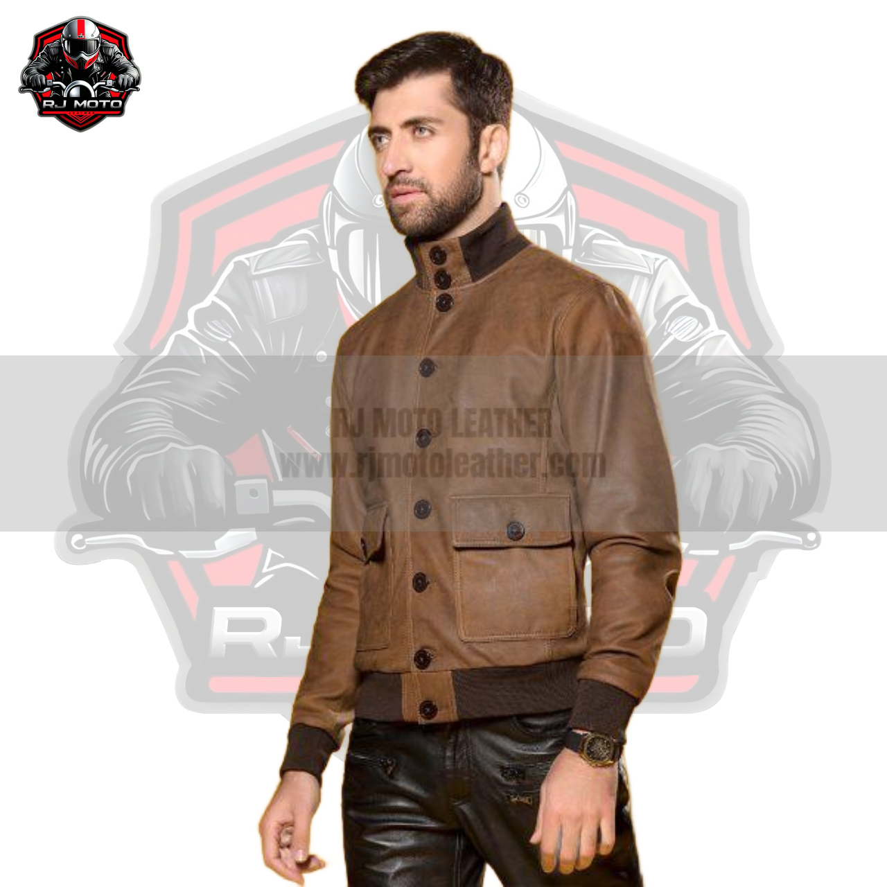 Own a piece of timeless fashion with this classic brown leather bomber jacket. Order now and upgrade your wardrobe with vintage military style!