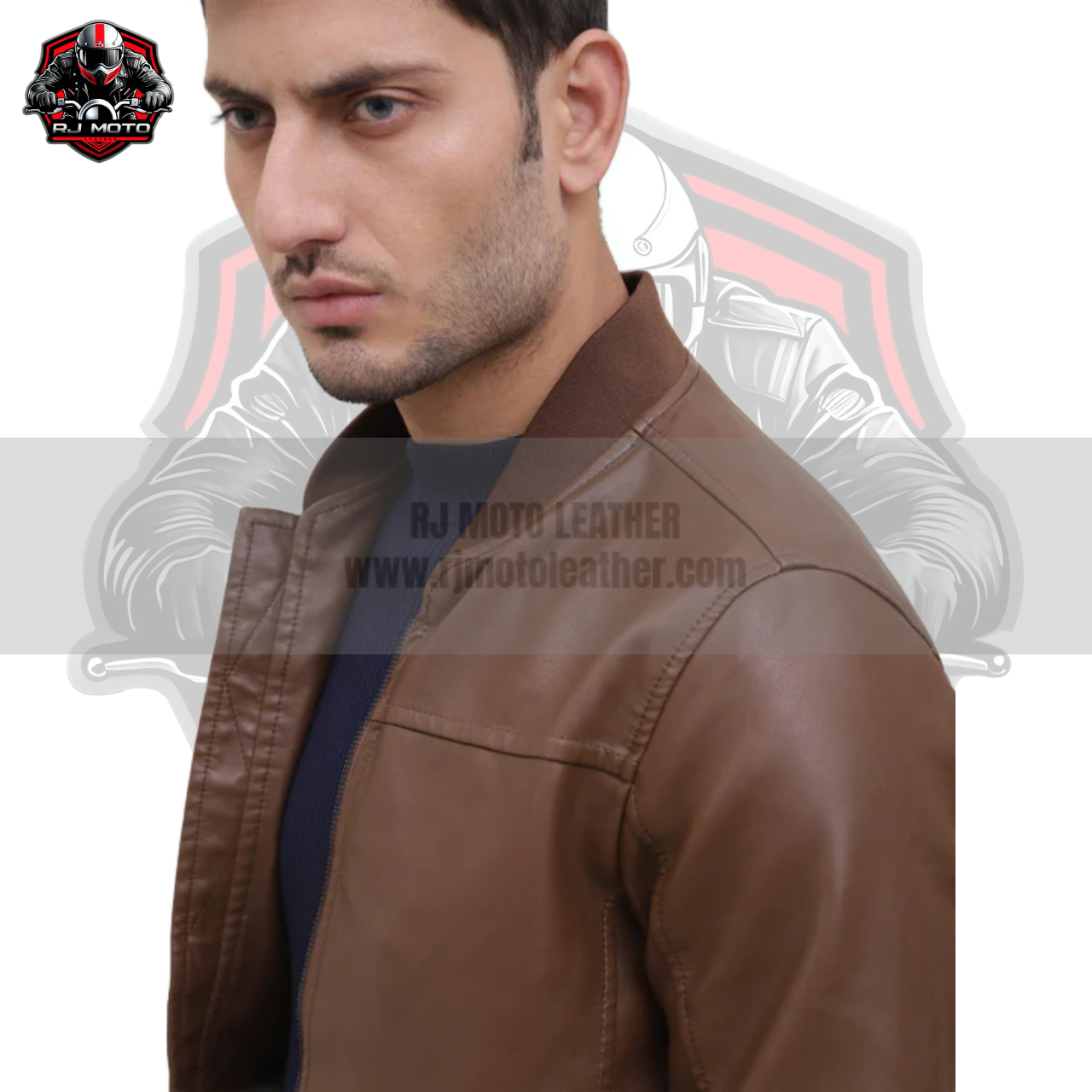 Upgrade your wardrobe with this Men’s Brown Leather Bomber Jacket, crafted from 100% genuine sheepskin leather for a soft, lightweight, and luxurious feel. This handmade bomber jacket offers a slim-fit design, making it a stylish and comfortable choice for everyday wear. The rib-knit cuffs and hem, along with a front zipper closure, ensure a snug fit and a sleek look. Perfect for casual outings, riding, or layering over your outfit.