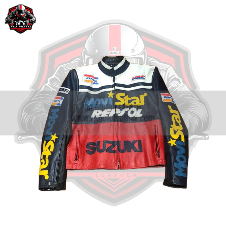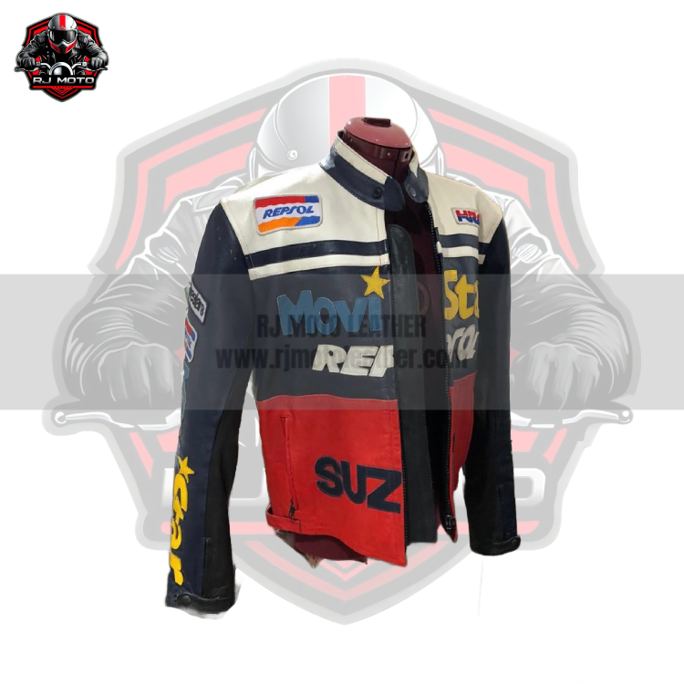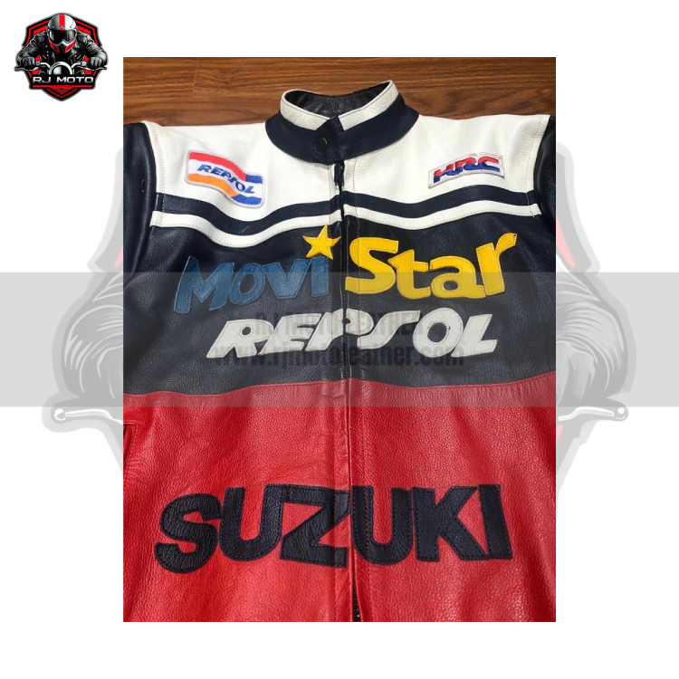 Movie Star Repsol Vintage Vintage Streetwear Motorbike Racing Leather Jacket – Movie Star Suzuki Repsol Handmade Custom Motorcycle Vintage Jacket for Men & Women