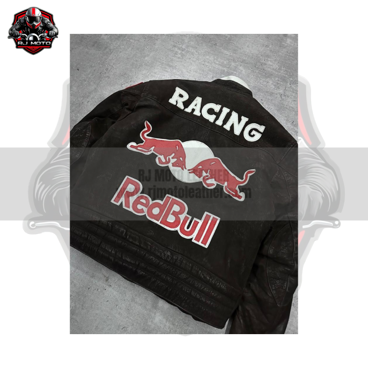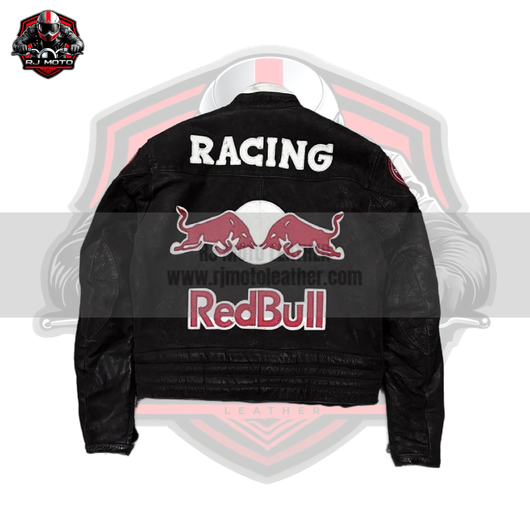 Redbull Black Vintage Streetwear Motorbike Racing Leather Jacket – Redbull Handmade Custom Motorcycle Vintage Jacket for Men & Women