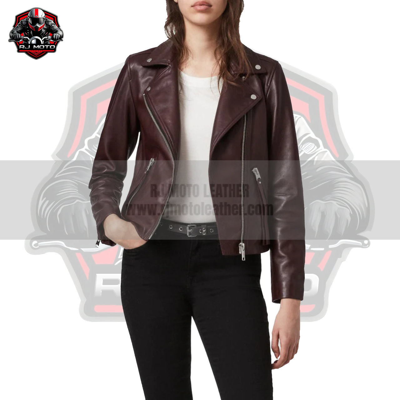 👉 Order now from RJ Moto Leather and elevate your style with this elegant maroon leather biker jacket!