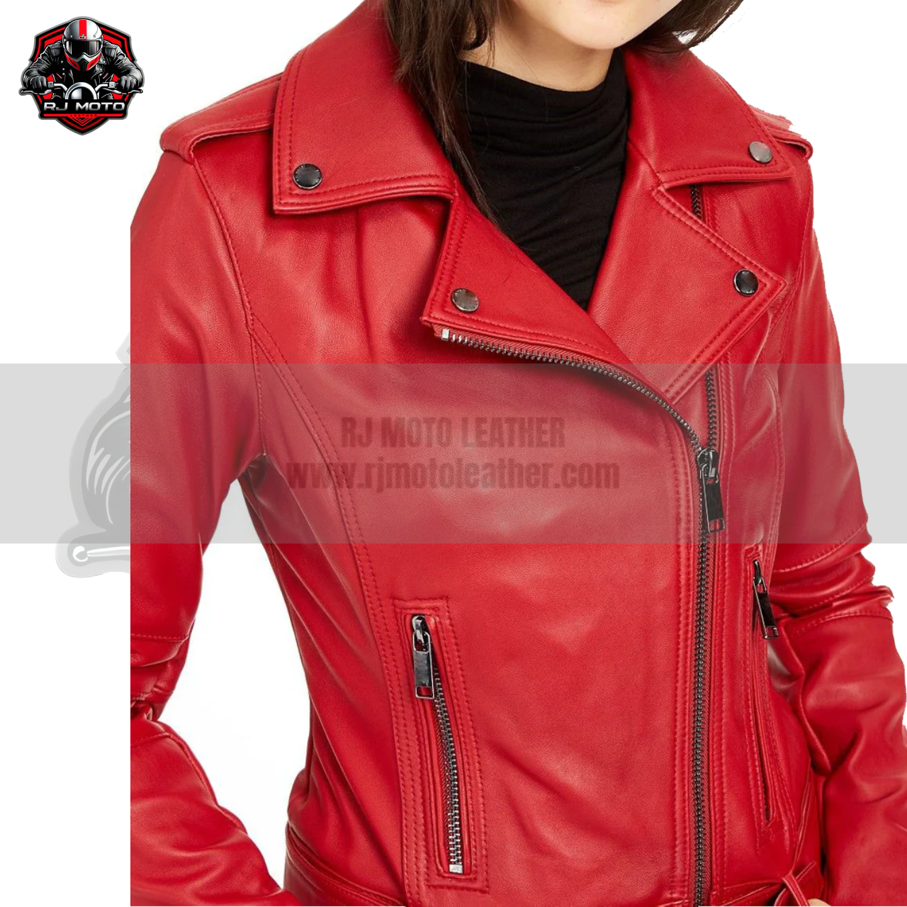 Elevate your motorcycle fashion with this premium red-bomber-jacket, combining protection, comfort, and eye-catching style. Order your Women’s Red Sheepskin Leather Biker Jacket today and ride confidently with RJ Moto Leather.